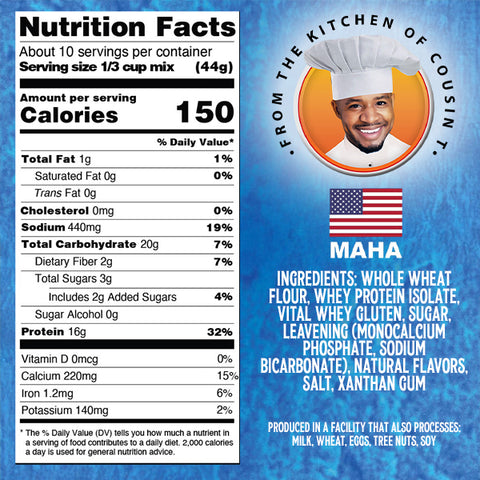 Introducing Cousin T’s Gourmet Protein Original Pancake Mix – the perfect balance of classic flavor and muscle-fueling protein! Our premium mix creates light, fluffy pancakes with a rich, buttery taste that’s as delicious as it is satisfying. Whether you're fueling up for the day ahead or replenishing after a workout, these pancakes deliver the perfect combination of taste and nutrition. Top them with Cousin T’s Pure Maple Syrup for a breakfast that’s simply irresistible – but be sure to make extra, because everyone will want more!